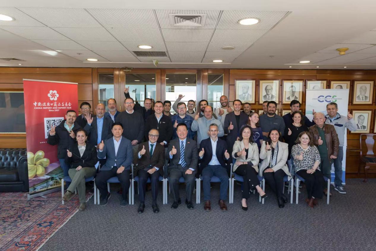 圣地亚哥商会国际事务部主任贝拉斯科、商会国际事务委员会主席洛佩安迪亚、鸿展公司总经理沈永菡及会员企业代表等近40人出席。